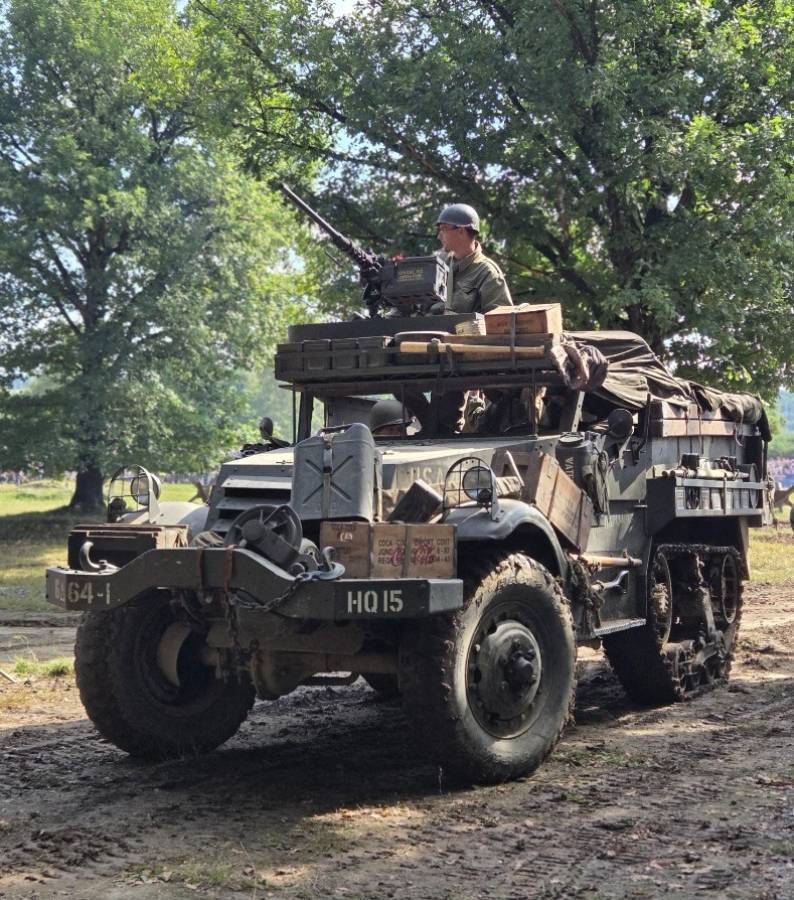 Poté přišla na řadu dymanická bojová ukázka - demonstrace osvodobitelů z východu, ústup německé armády směrem na západ a bitva mezi US Army a Německou armádou.